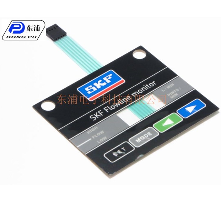 東莞東浦薄膜開關(guān)具有良好的防水、防塵、防油、防有害氣體侵蝕、性能穩(wěn)定可靠、重量輕、體積小、壽命長(zhǎng)、裝聯(lián)方便,面板可洗滌而字符不受損傷,色彩豐富,美觀大方等優(yōu)點(diǎn)。使用薄膜開關(guān)令您的產(chǎn)品更具時(shí)代特色。薄膜開關(guān)主要類型薄膜開關(guān)面板是一種由剛性或柔性印制電路板為基體,安裝上有手感或無手感按鍵,再覆以印刷有彩色裝飾性圖案的塑料(聚碳酸酯PC、聚酯PET等)薄膜面板構(gòu)成的、集開關(guān)功能和裝飾性功能為一體的電子部件,是一種新型的人機(jī)對(duì)話界面。其開關(guān)電路與整機(jī)的連接方式可采用焊接或插接的方式來完成。