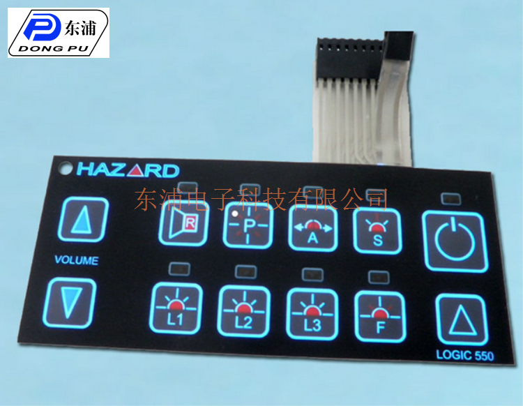 面板層一般在低于0.25MM的PET、PC等無色透光片材絲印上精美圖案和文字制作而成,因面板層最主要的作用在于起標(biāo)識和按鍵作用,所以選用材料必須具有高透明度、高油墨附著力、高彈性、高韌性等特點。